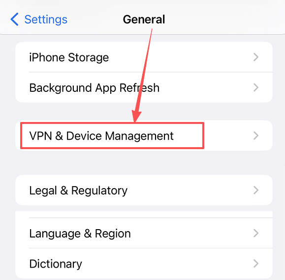 Go to Settings --> General --> VPN & Device Management